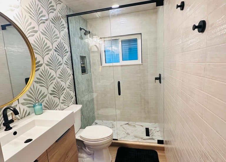 Custom Tile Showers & Walls: Design and installation of walk-in showers, tub surrounds, and accent walls with precision-laid ceramic, porcelain, or natural stone tile. We can incorporate niches, benches, and decorative mosaics for a personalized touch.